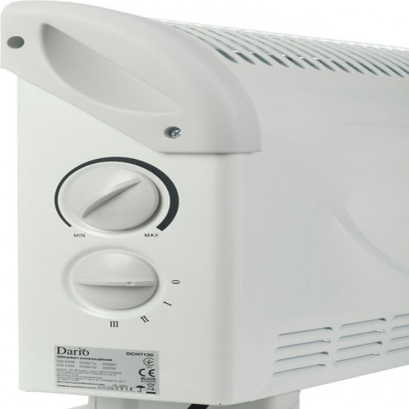 Dario DCH7120 білий – конвекційний прилад, що забезпечує оптимальні температури в будь-яких приміщеннях, принесе задоволення любителям тепла та комфорту в прохолодні дні. Компактний пристрій виконаний у стильному дизайнерському виконанні у білому забарвленні. На лицьовій поверхні забезпечений вентильованими оригінальними ґратами, що доповнюють дизайн приладу.